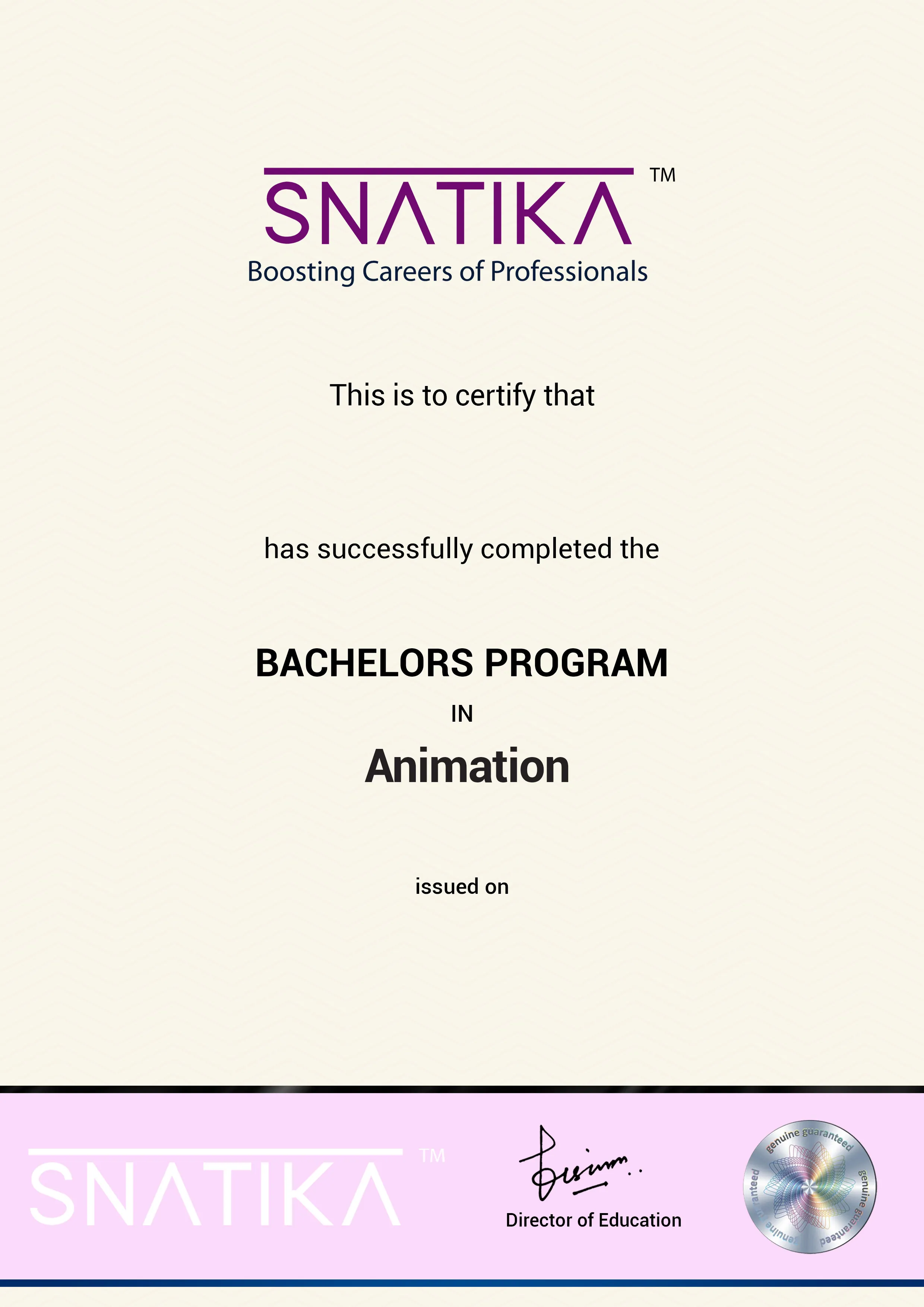 SNATIKA only provides a course completion certificate (which means you have successfully completed the program) and doesn’t award a Degree/Diploma.