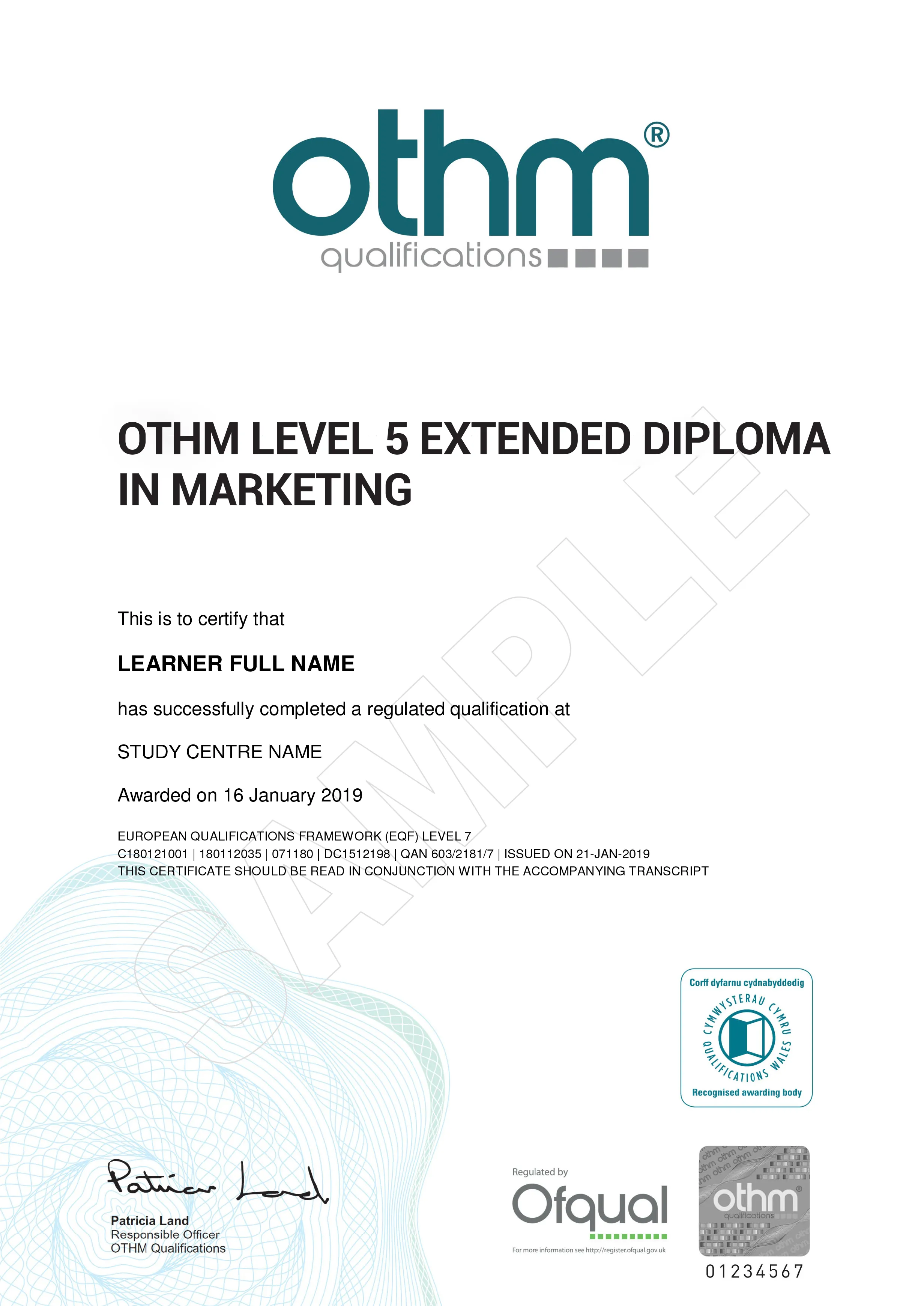 OTHM is approved and regulated by Ofqual (Office of the Qualifications and Examinations Regulation). The Register of Regulated Qualifications Framework can be found at https://register.ofqual.gov.uk . OTHM is an awarding body and not a university. OTHM only awards diplomas and not degrees.