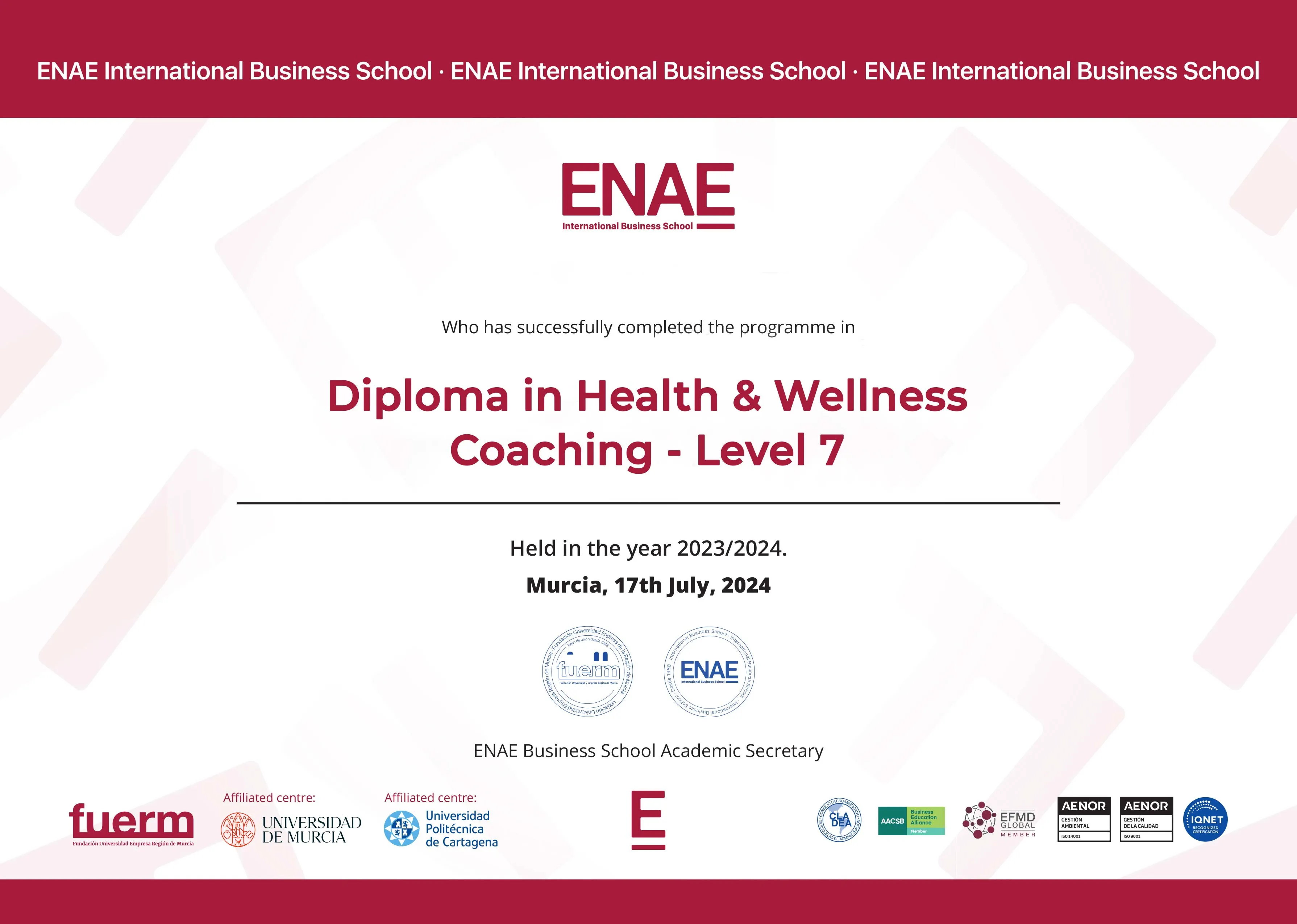 ENAE Business School is a private, for-profit teaching university in Spain. It offers a variety of undergraduate and postgraduate programs with both blended and online distance learning delivery options. Its head office is in Murcia, Spain and is ranked #35 in QS International Trade Ranking - Masters and MBA 2024. SNATIKA learners are awarded MBA, MSc, MA, BSc, and BA degrees from ENAE Business School.