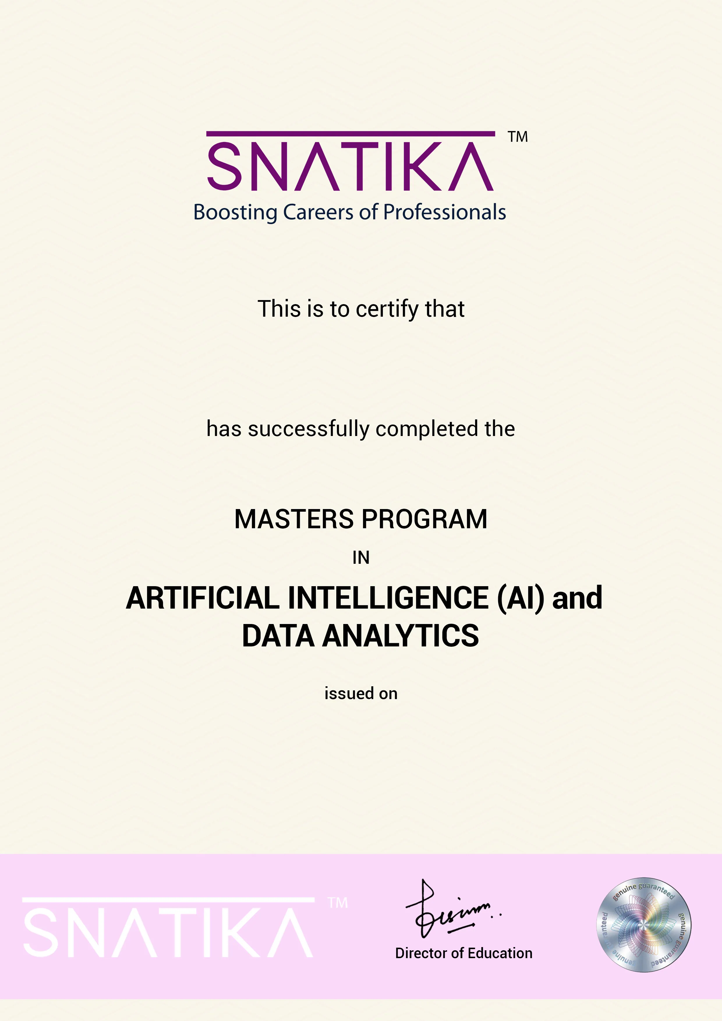 SNATIKA only provides a course completion certificate (which means you have successfully completed the program) and doesn’t award Degree/Diploma.SNATIKA only provides a course completion certificate (which means you have successfully completed the program) and doesn’t award Degree/Diploma.