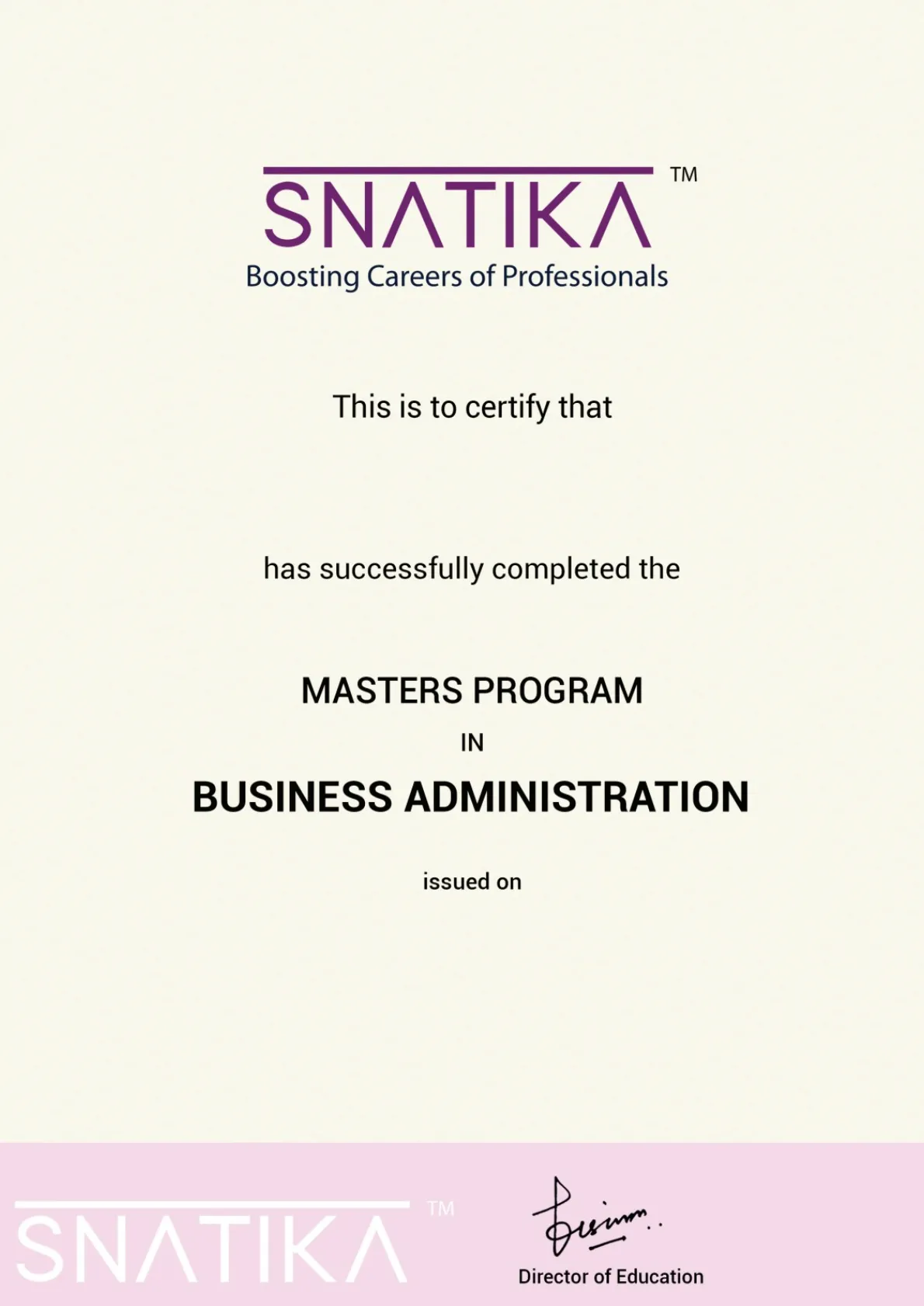 Upon successful completion of the program, Learners get the following 3 certificates: Master of Business Administration Degree from the University of Gloucestershire, UK, Level 7 Diploma in Strategic Management and Leadership from OTHM, UK, and Masters Program Certificate in Strategic Management and Leadership from SNATIKA.