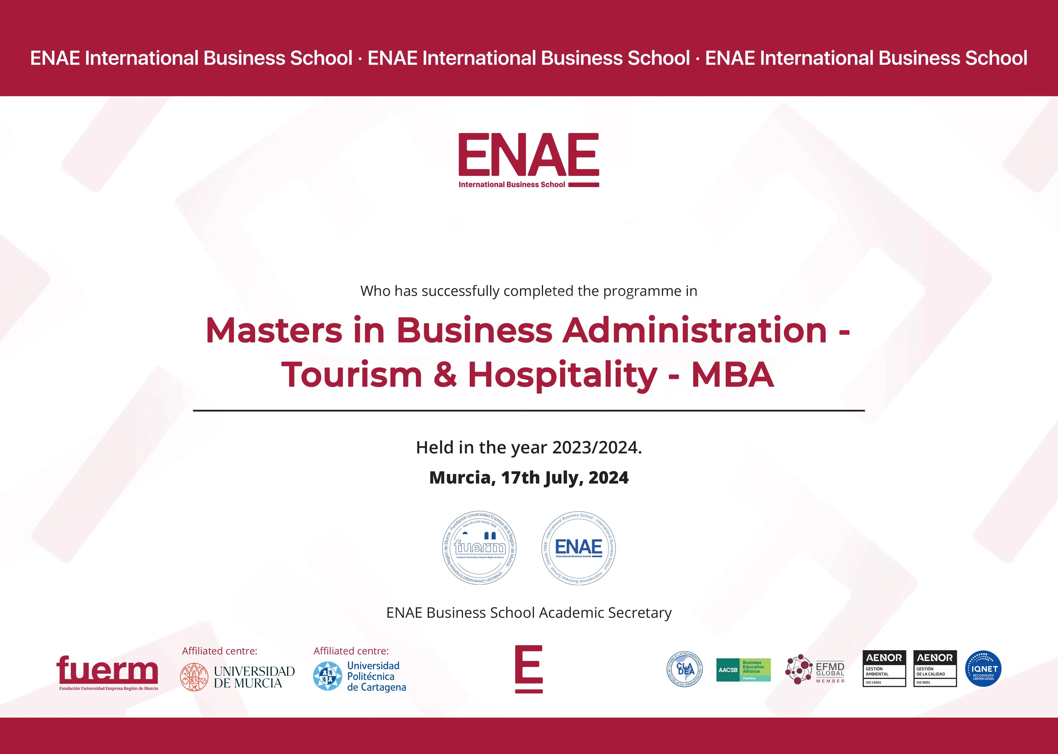 Q) Is SNATIKA an approved partner of ENAE Business School?