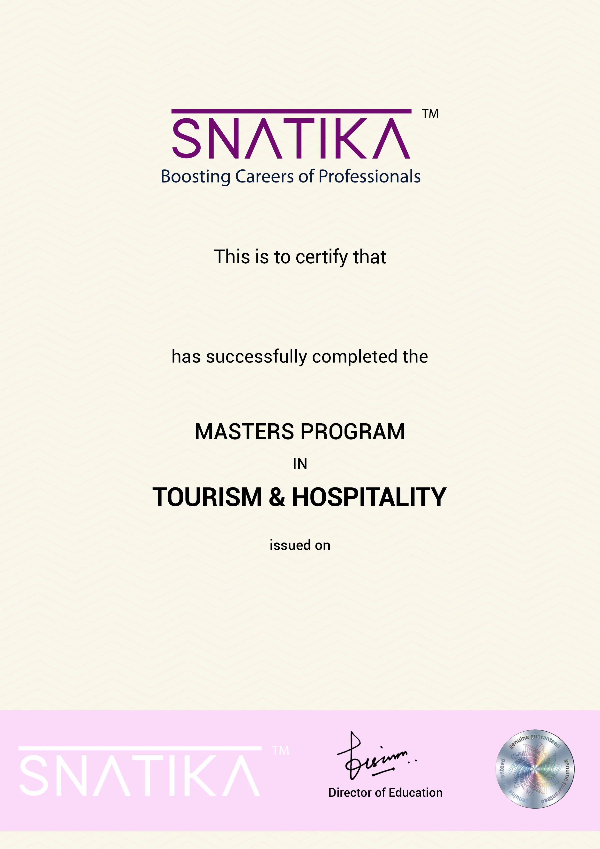 SNATIKA only provides a course completion certificate (which means you have successfully completed the program) and doesn’t award Degree/Diploma.SNATIKA only provides a course completion certificate (which means you have successfully completed the program) and doesn’t award Degree/Diploma.