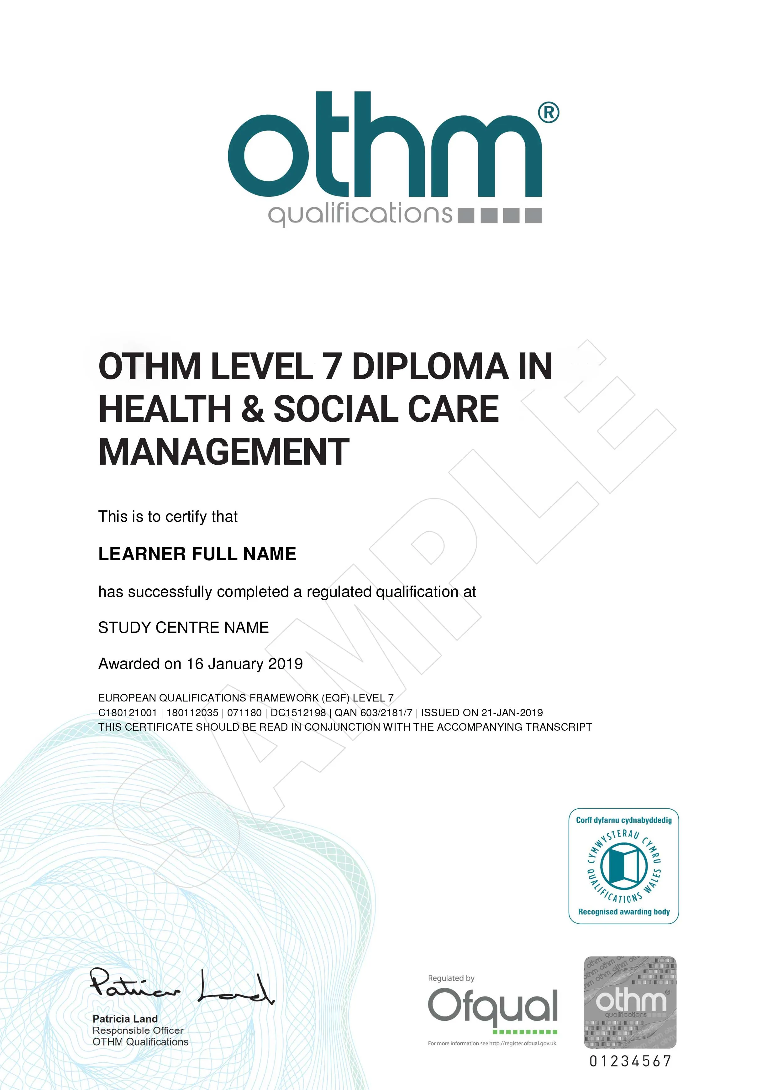 OTHM is approved and regulated by Ofqual (Office of the Qualifications and Examinations Regulation). The Register of Regulated Qualifications Framework can be found at https://register.ofqual.gov.uk . OTHM is an awarding body and not a university. OTHM only awards diplomas, not degrees.