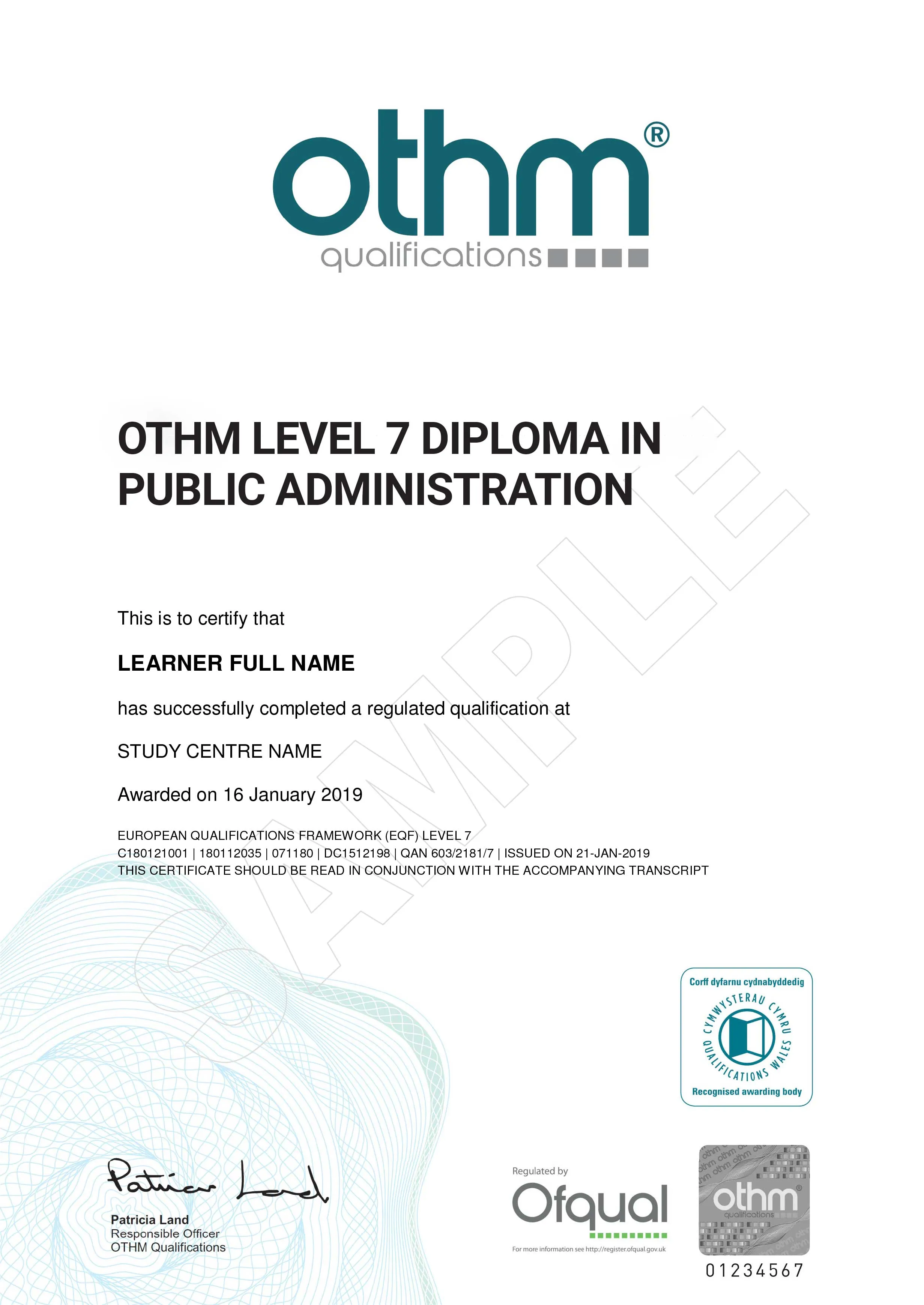 OTHM is approved and regulated by Ofqual (Office of the Qualifications and Examinations Regulation). The Register of Regulated Qualifications Framework can be found at https://register.ofqual.gov.uk . OTHM is an awarding body and not a university. OTHM only awards diplomas, not degrees.